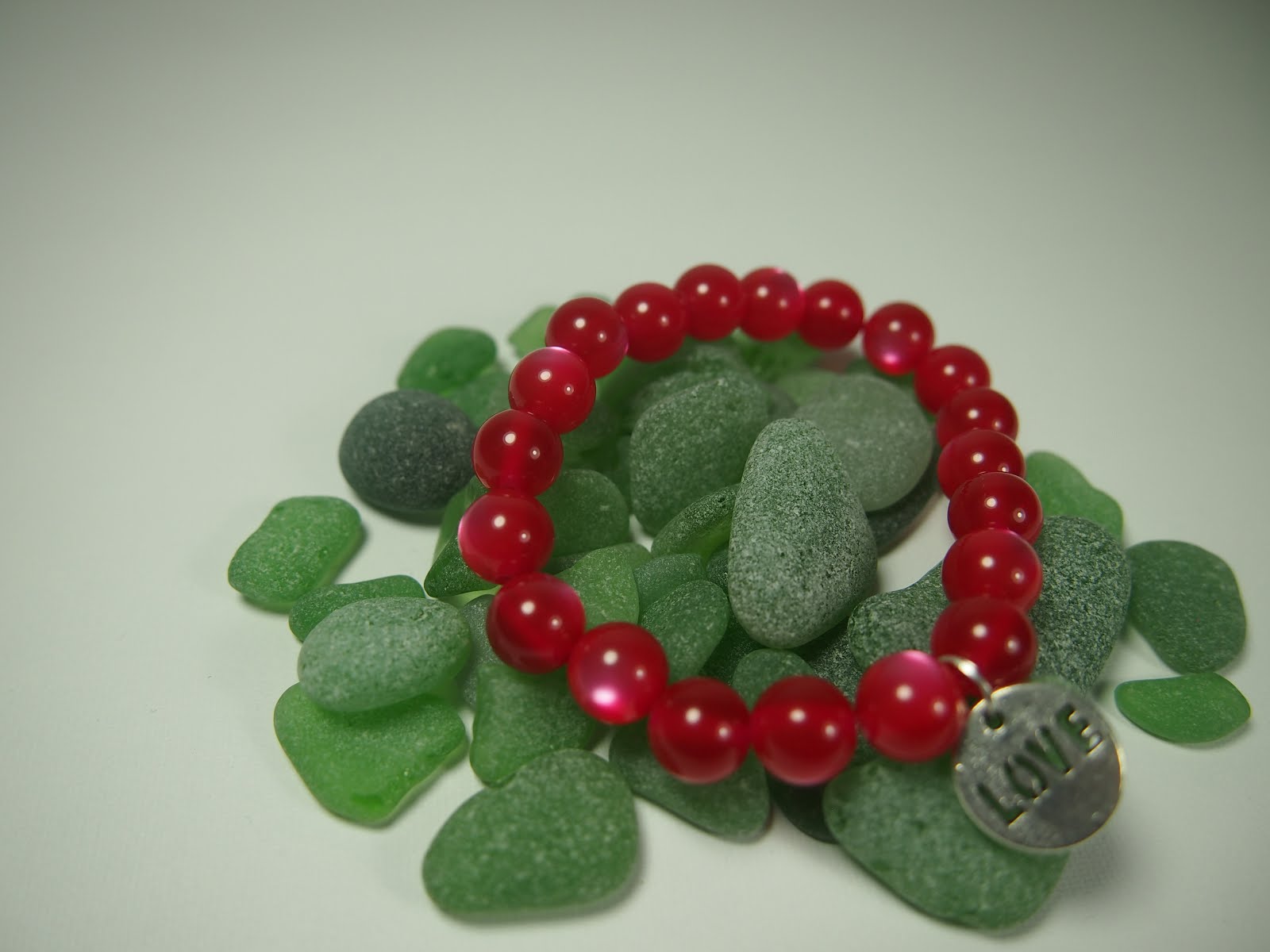 Lo que hoy os traigo es una bonita pulsera elástica de cuentas de ojo de gato en color rojo y adornada con un dije plateado en el que se puede ver grabada la palabra LOVE. Un bonito detalle tanto para regalar como para regalarte :)